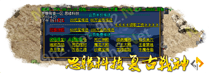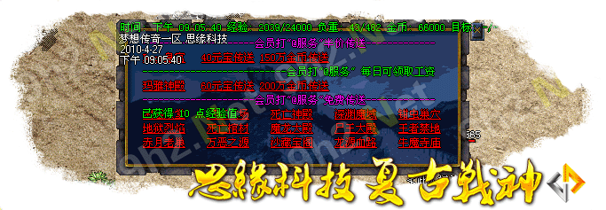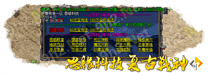 <255,252>加入会员彰显尊贵每日可领取工资,元宝地图会员半价传送,其它所有金币BOSS传送地图均为免费.