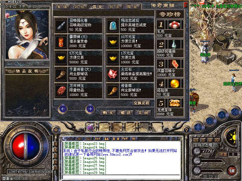 【重宝地图】本服务端特为广大GM增加目前最流行的地图 <众神归来>:此地图爆出炎龙,青龙,雷龙等装备 <万劫魔宅> :,荣耀,倚天等 <四级密室>: 此地图最新的四级技能