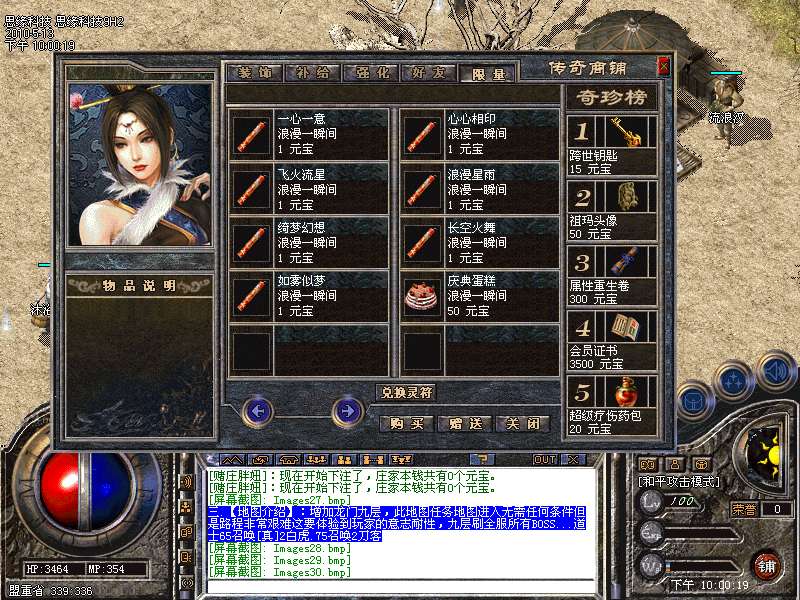 b.镇魔神石: 60分刷新一只千年法魔爆本服所有装备,开天类武器2暴1