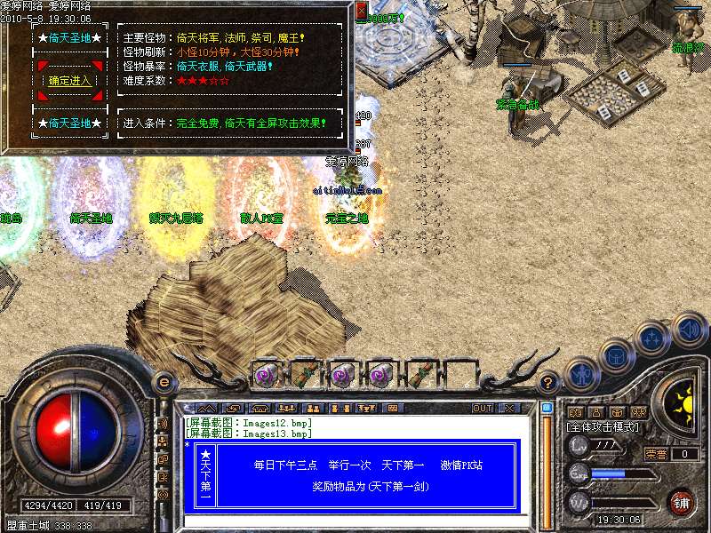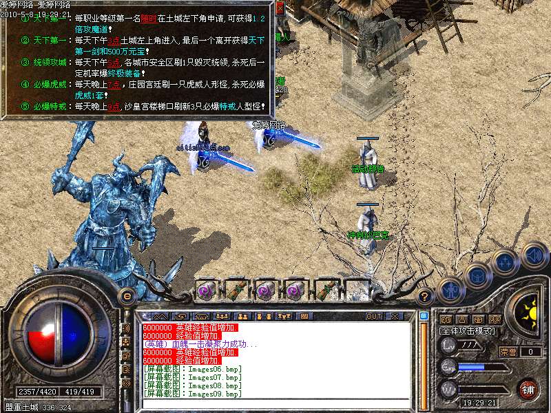 ③.统领攻城:每天下午5点,各城市安全区刷1只毁灭统领,杀死后一定机率爆终极装备!