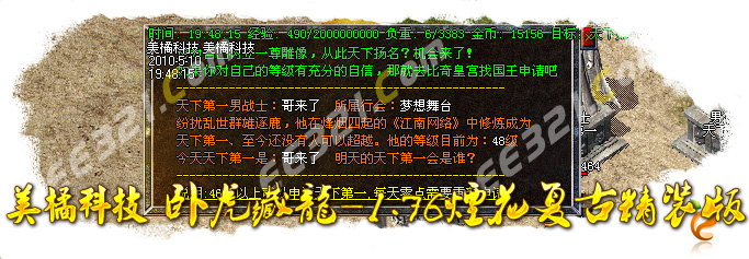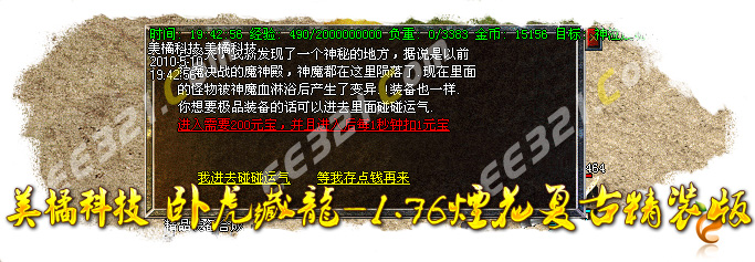 〖公告〗:服务器保证每位玩家的利益,服务器承诺不会为玩家刷任何装备和属性点。一切装备靠打,假如果你觉别人一个人打你4家人,就说GM帮他调属性你可以离开,人家PK用的是太阳包,攻击药水。你用上以后也会出来这种感觉