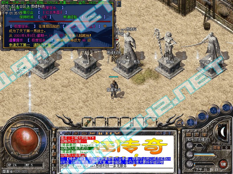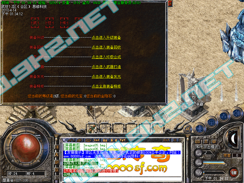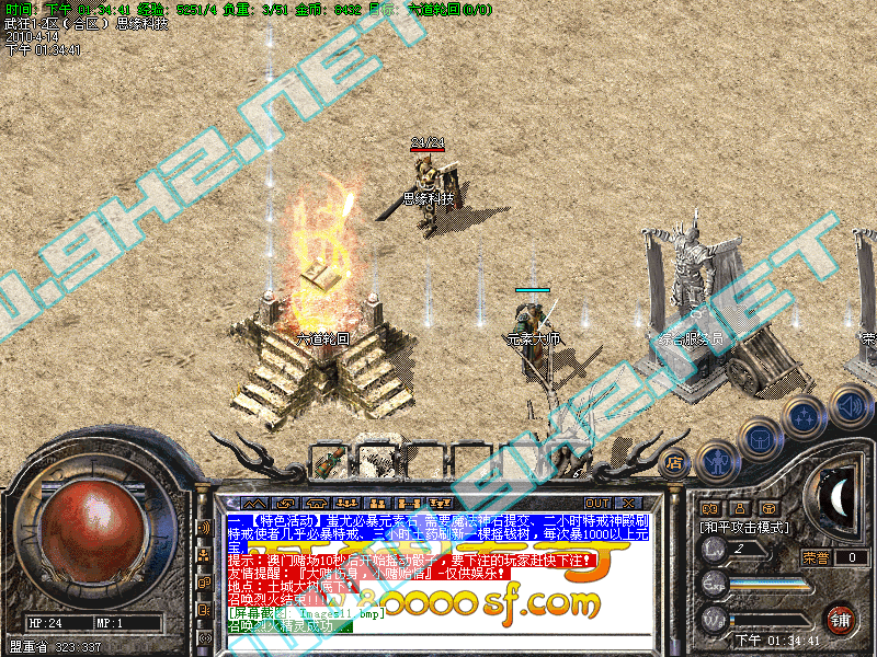 六.【特殊刷新】用魔法神石在土药旁边的魔法结阵可召唤出蚩尤.使用魔法神石召唤的同时可获得丰富的奖品.包括炎龙刃 致命2套装卷 傲皇首饰及武士神石 合成仙丹