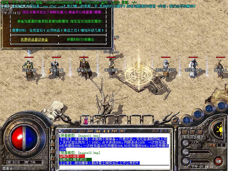 〖公告〗:特别提示:在每天的下午3点,6点,晚上10点,12点会开放武器专爆地图!必爆王者武器和大量元宝!进入地图需要赌筛子才可以进入!具体情况自己去体验!