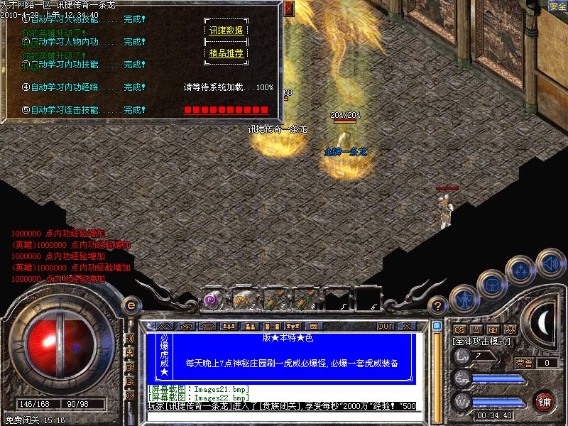 免费闭关:每秒1000万经验100万内功经验!(安全区域,可挂到本服顶级200级,内功255级)