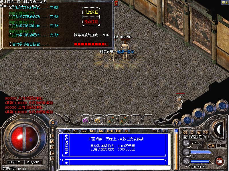 激情殿堂:每秒1200万经验200万内功经验!(可PK区域,可挂到本服顶级200级,内功255级)