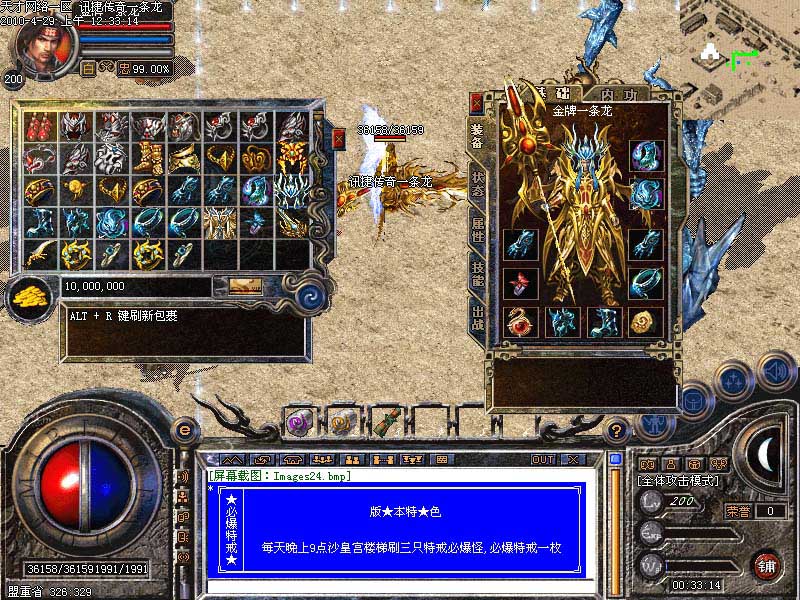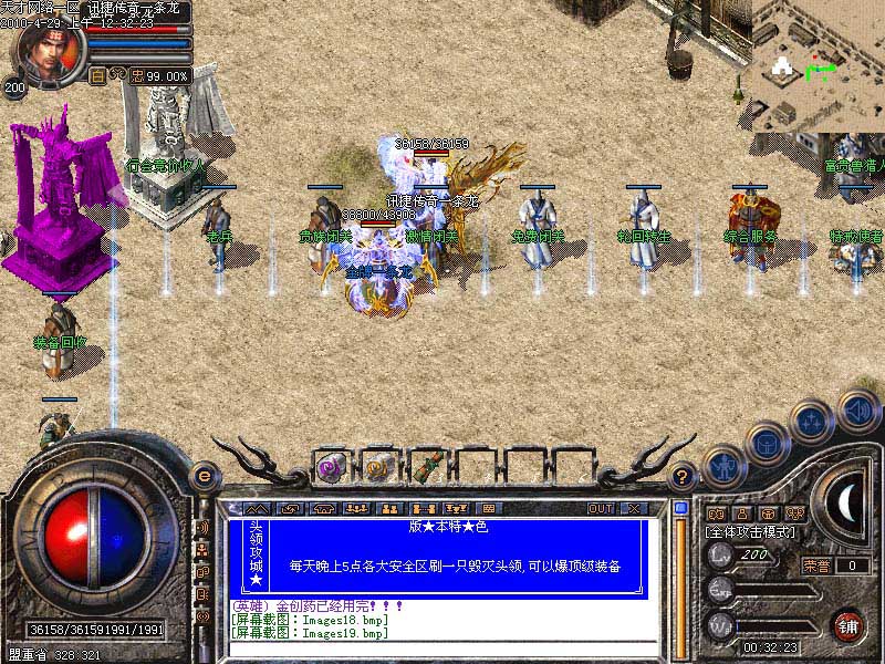 ③.统领攻城:每天下午5点,各城市安全区刷1只毁灭统领,杀死后一定机率爆终极装备!