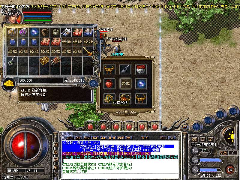 - ☉ 热血传奇单机版V176怀旧复古智能假人攻沙陪玩单机一键安装GM后台免虚拟机
