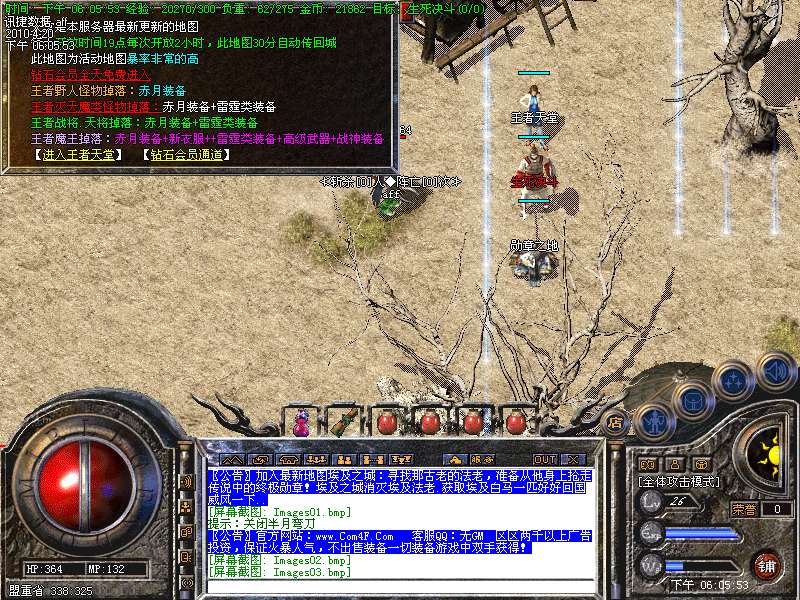 特别地图:王者天堂为打宝天堂,每天15点.19点.0点开放.此地图任何大小怪物都可以有机率暴出赤月类装备和雷霆.战神装备.王者魔王可暴出终极武器!