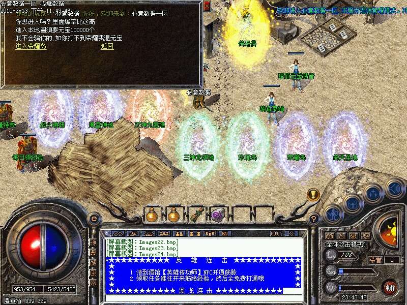 逍遥连击2010年巨献—2.0316逍遥连击-神虎双连击版-虎威虎啸双连击,加入沙巴克行会押镖系统,四级技能,必杀斗笠,必杀面巾,强化神兽 盛大副将 地图,装备采用全新盛大装备,高额元宝升级奖励, 不断刺激玩家练级激情,此版本是骨灰级玩家首选..