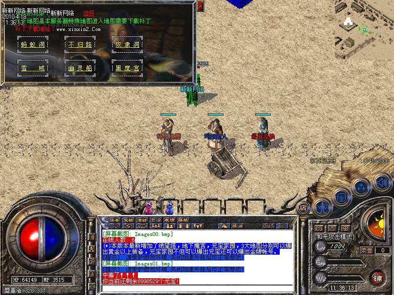 (*)本版本最新增加了绝望塔,地下魔宫,元宝家园,3大地图分别可以爆出黄金以上装备,元宝家园不但可以爆出元宝还可以爆出金牌帐号。
