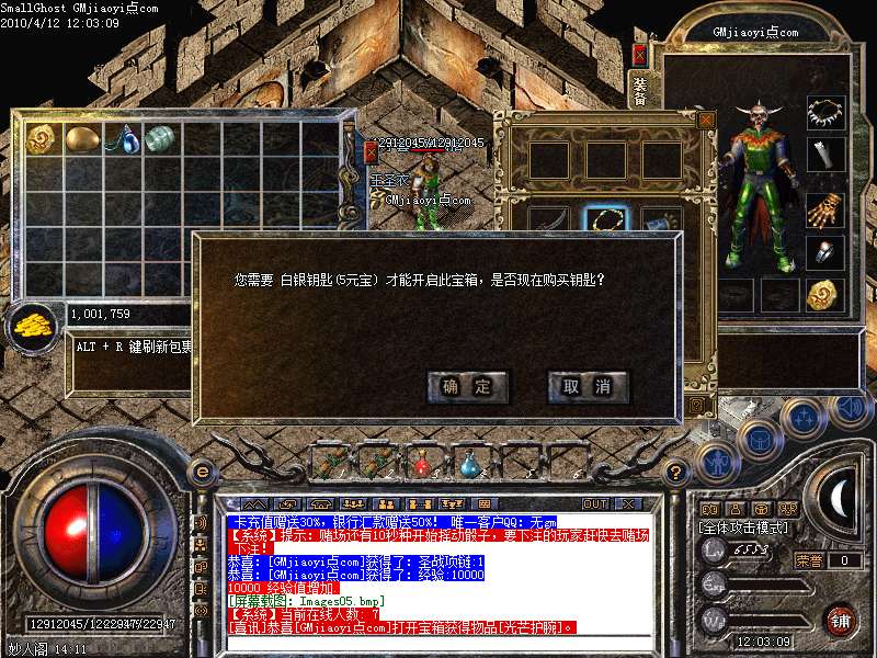 本F最新增开宝箱功能,钥匙可以商铺购买,宝箱可开出终级装备和大量经验.