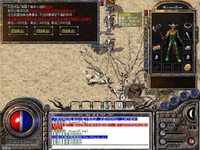 武器最高可升7点,99%成功率 武器幸运可升7点,项链可升3点. 只要你有时间,幸运10套不再是梦. 武器升级地址:土城万能NPC