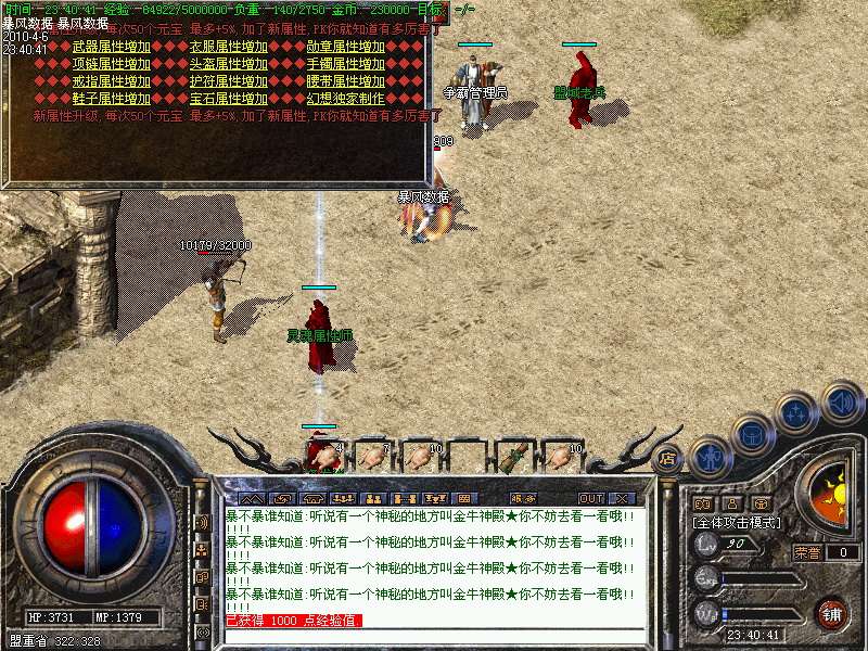 【神的恩赐系统】玩家可以在元宝商店使用获得<神的恩赐>,短暂的时间内激发自身潜能力量.增加人物死亡提示地图.坐标.方便丢了装备的快速找到该地点.