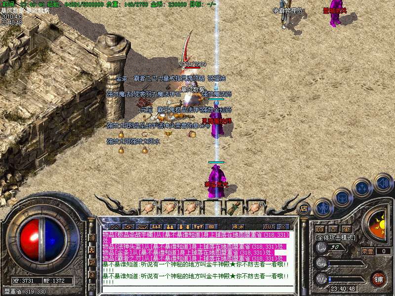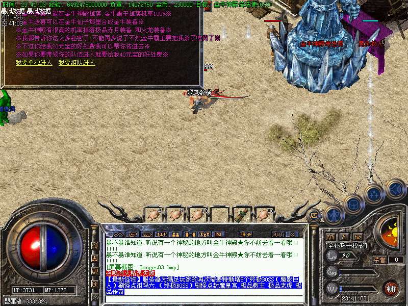 【公告】本服最新推出终级装备.[金牛套装] .火龙不在是终极装备.在金牛神殿地图,贵宾地图和火龙地界都有爆出.每一个地图都加入一个BOSS魔影巨人,爆终极装备,方便不是会员的玩家