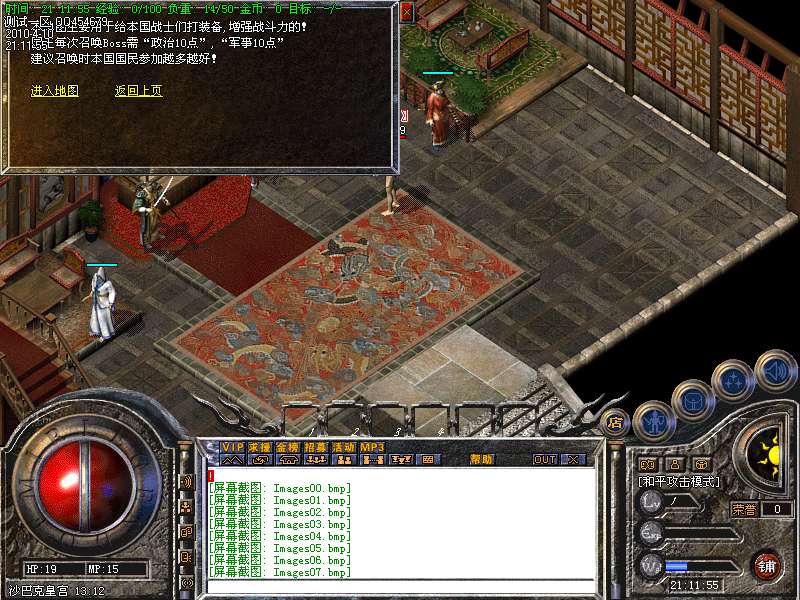 5.生死对战活动,活动时间到了,系统会全服提示,玩家根据屏幕上的活动按扭,选择相关的活动而参加,进入时是进入统一一个地图休息间安全区域,当时间