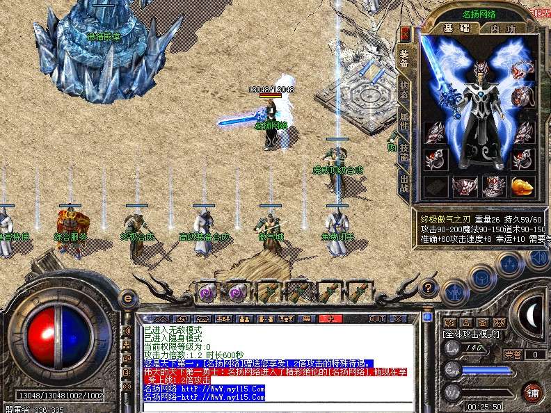 游戏介绍②: 本F的等级最高为130级,增加内功技能全部免费送-[到了等级送].终极装备是倚天荣耀装备可在本F终极地图(荣耀之地和荣耀之城)直接暴出或者用封神装备合成,里面的怪物为人型怪,穿什么就暴什么,无比凶猛!建议组队前往!荣耀套装备带有暗藏属性!特别是倚天武器,想知道什么样可以带上试试