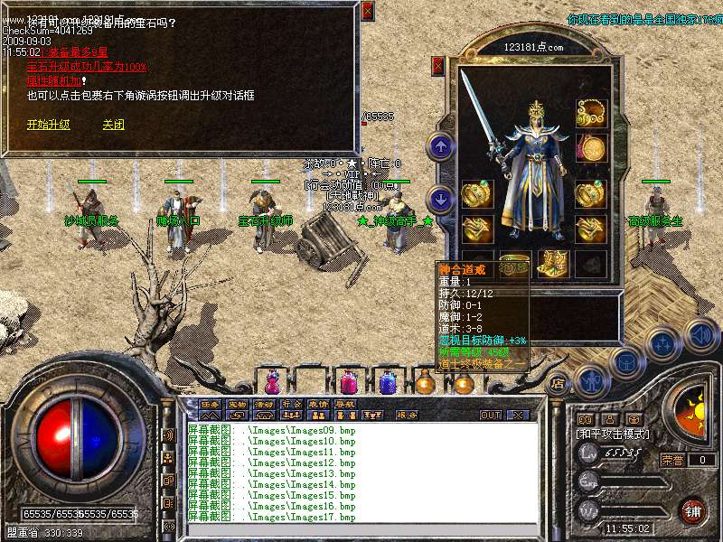[151]开区第三天晚上举行第一次攻沙比赛。获胜行会奖励5000元宝.以后天天攻沙,天天有奖.激情永在!