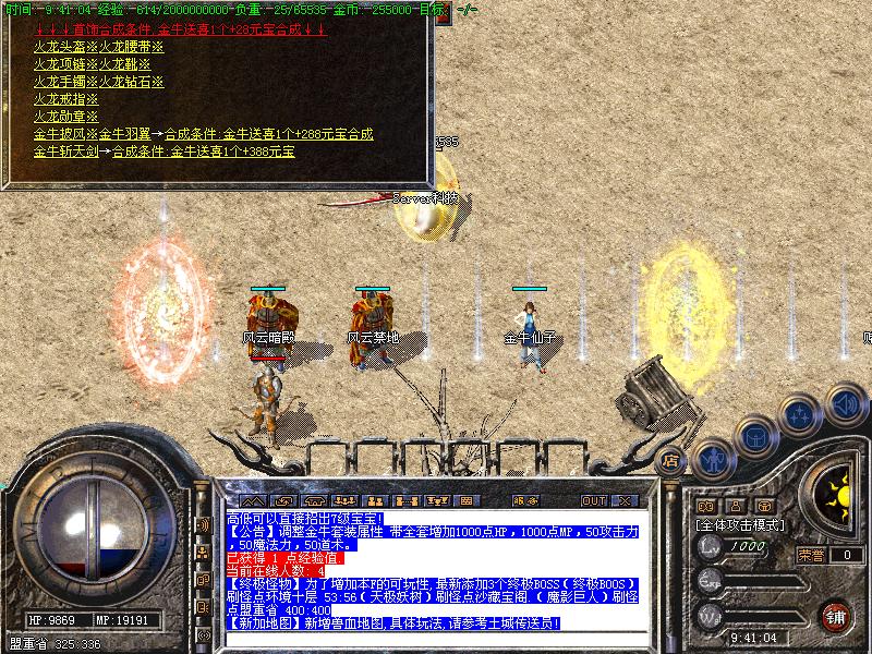 新加地图:风云禁地 风云暗殿 里面刷各种BOSS,贵宾装备怪,新增加终极BOSS