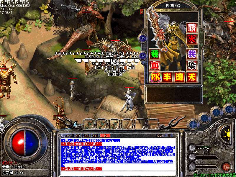 器打怪经验为盛大的一万倍,爆率为100倍!400级高级套装在变态地图内可以爆出