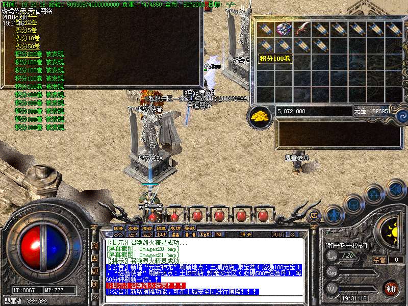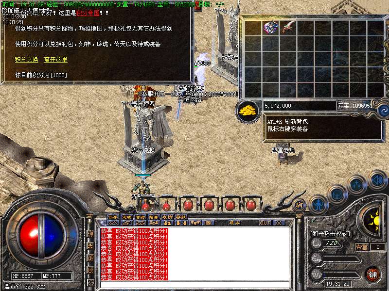 7、元宝可在元宝神龙身上必爆100和打装备在土城NPC高级服务<装备回收>获得。