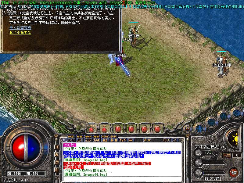 3、中级装备狂雷、逆火、通云、王者系列装备在 夺命岛、聚宝盆等BOSS有爆,爆率一般 。
