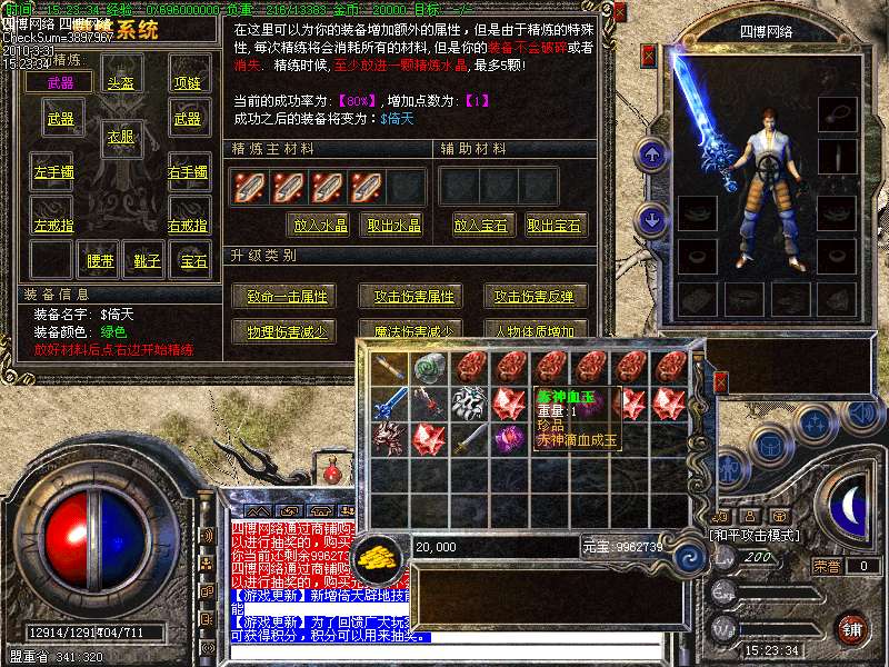 【特色功能】更新元素系统,和东南西北赌博系统,修改了加入雇佣兵不能转生的问题,更新的最新盛大的虎威套装,和倚天剑此剑,带终极技能倚天劈地!
