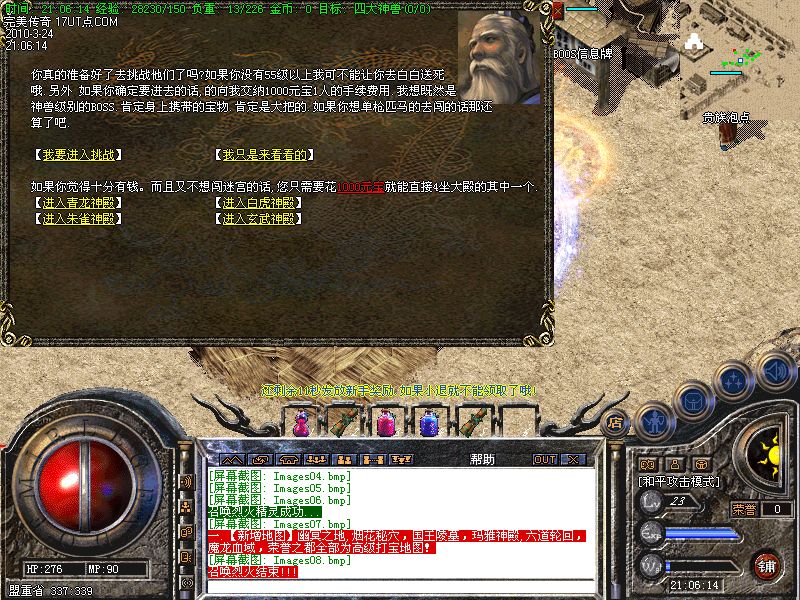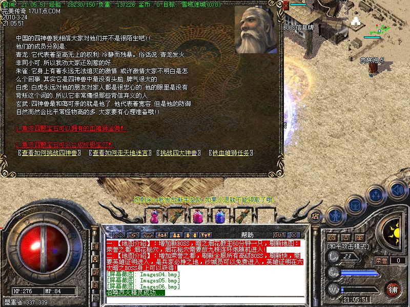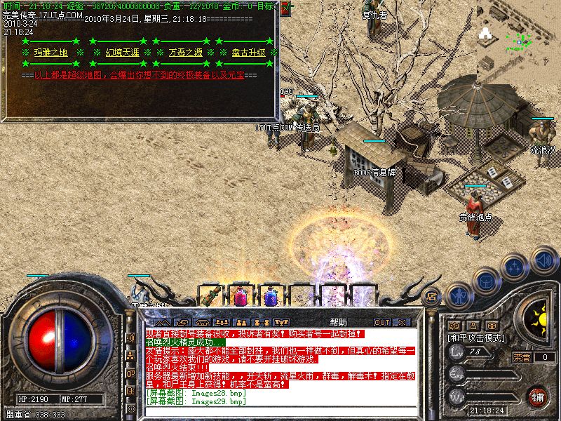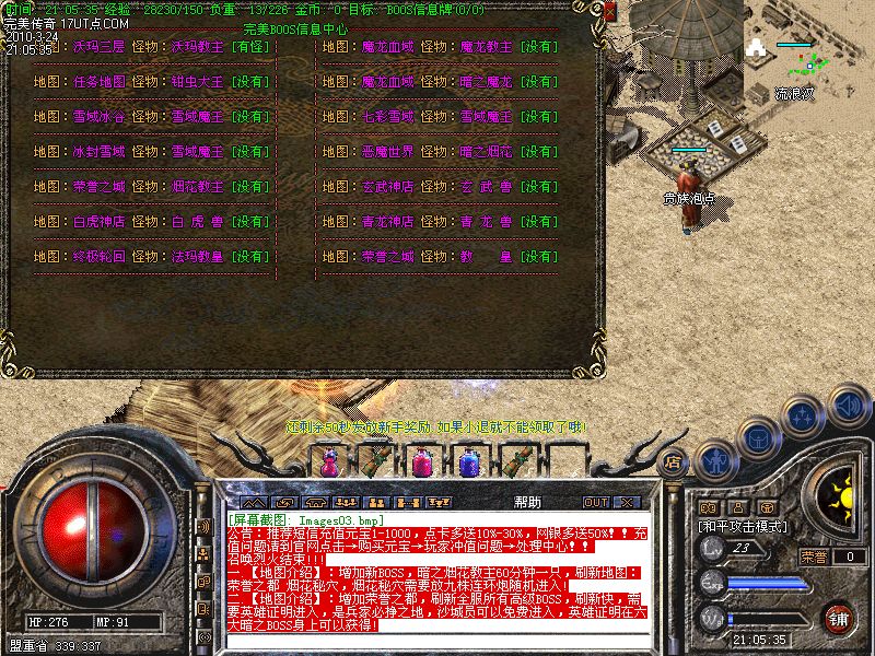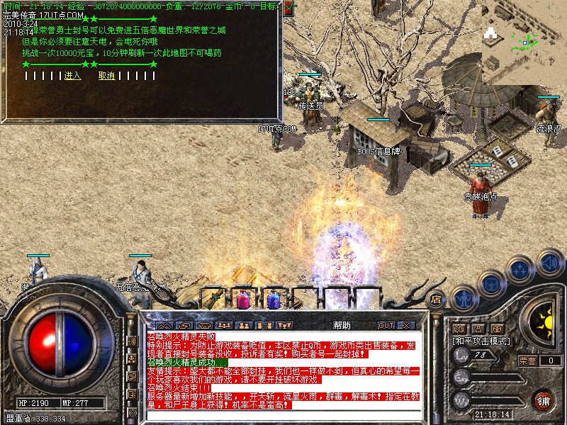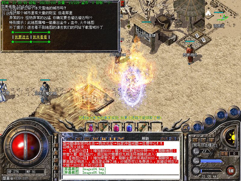 【地图介绍】:增加新BOSS,暗之烟花教主60分钟一只,刷新地图:荣誉之都 烟花秘穴,烟花秘穴需要放九株连环炮随机进入!