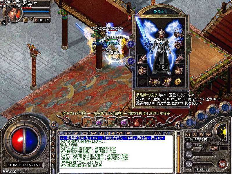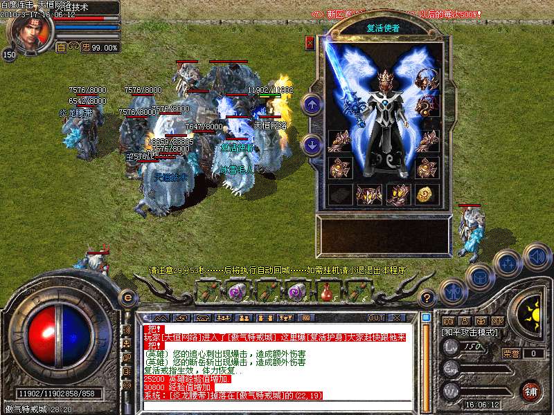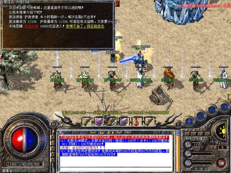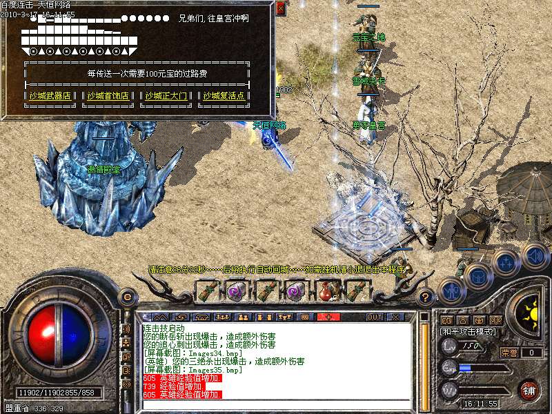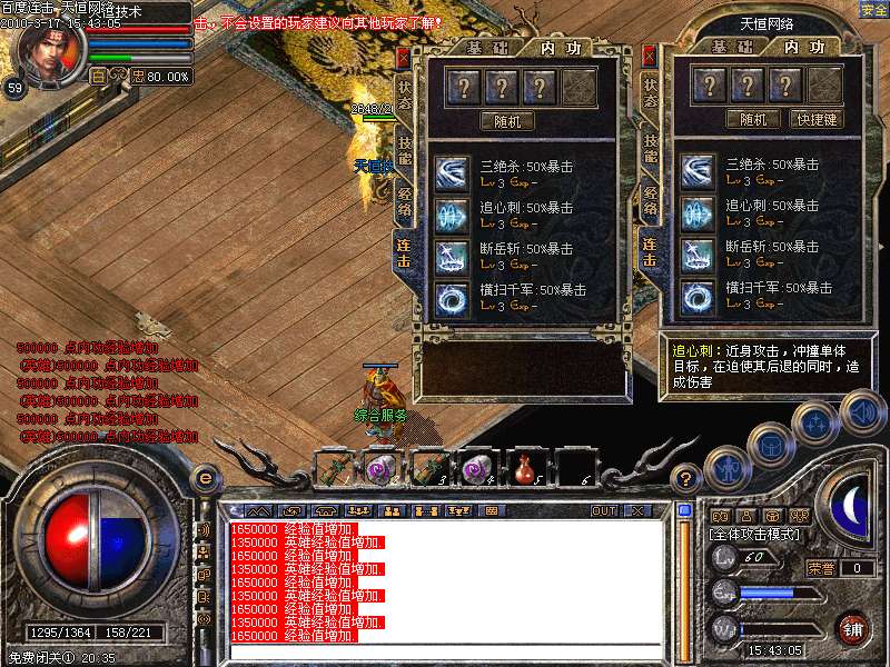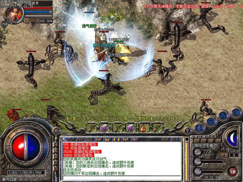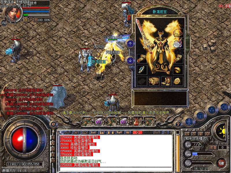 每秒100万经验 100万内功 双得哦!非RMB玩家的需求!