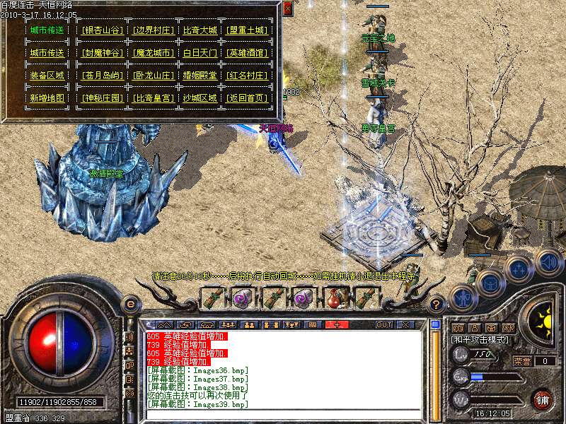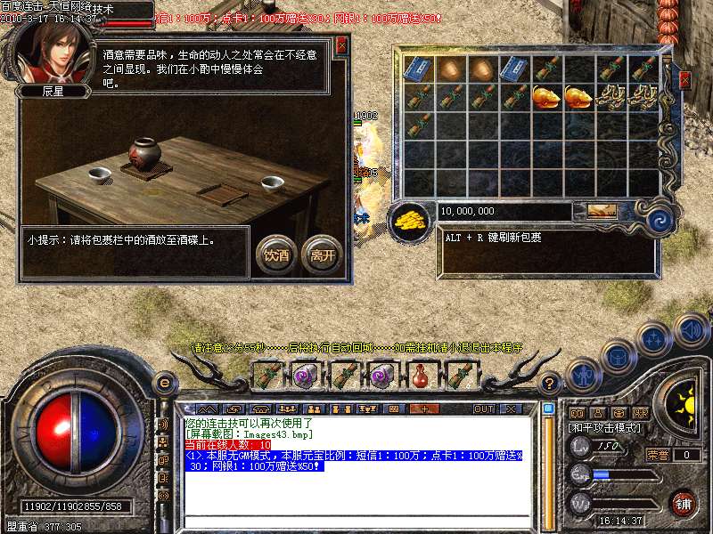 打初中级装备,另外进入本地图可和免费闭关一样自动获得100万经验和内功经验!