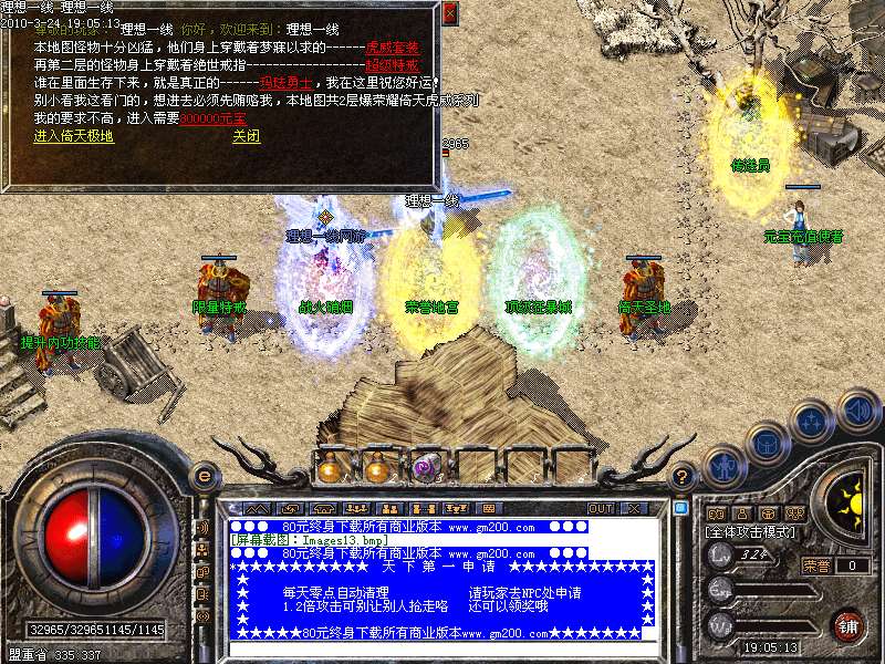 - ☉ V8引擎传奇端游【荒域专属单职业九大陆】Win一键端+配套补丁网站+架设教程