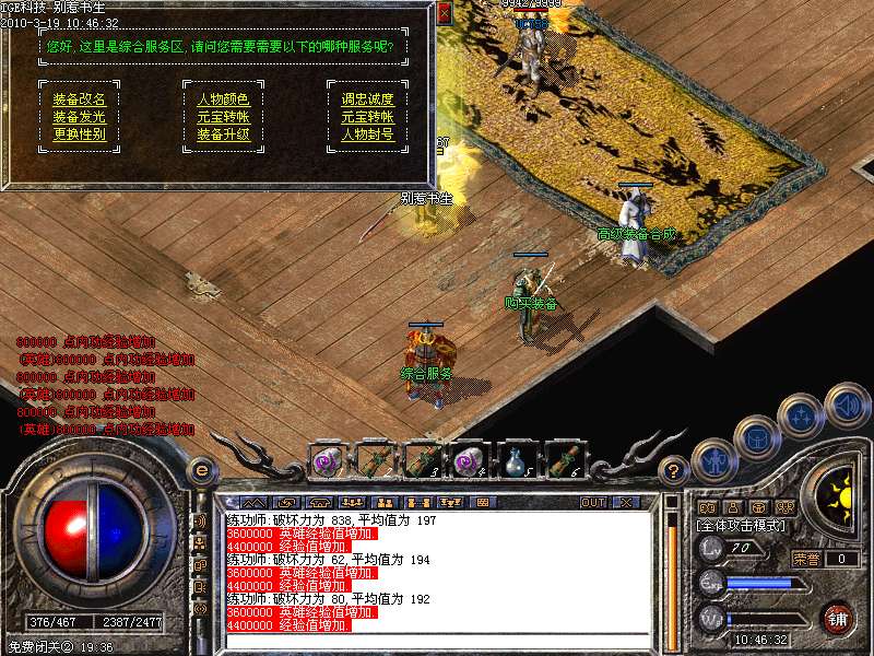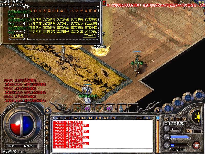 游戏介绍①: 免费泡点地图可以免费泡级.非RMB玩家的首选.无收费闭关修炼.元宝泡点地图.经验超高