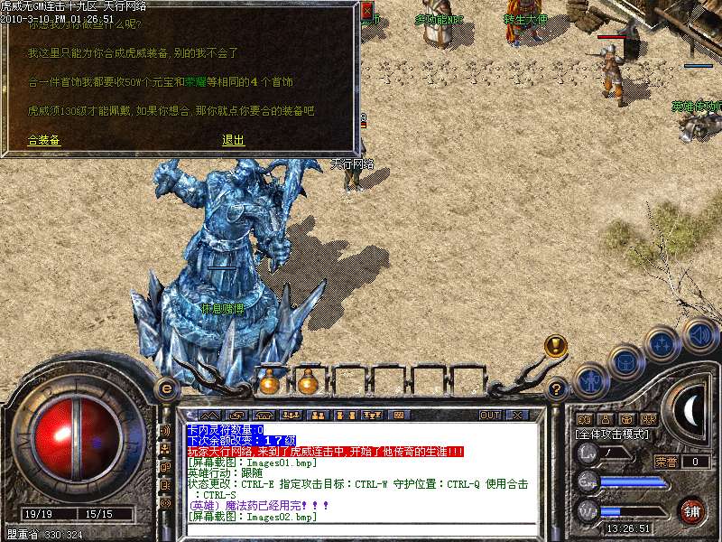 ①.最新加入虎威套,虎威之刃,倚天剑,衣服,荣耀套装,1.2倍攻击+防御的属性,套装更有更无敌的属性