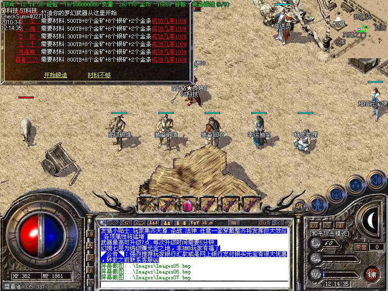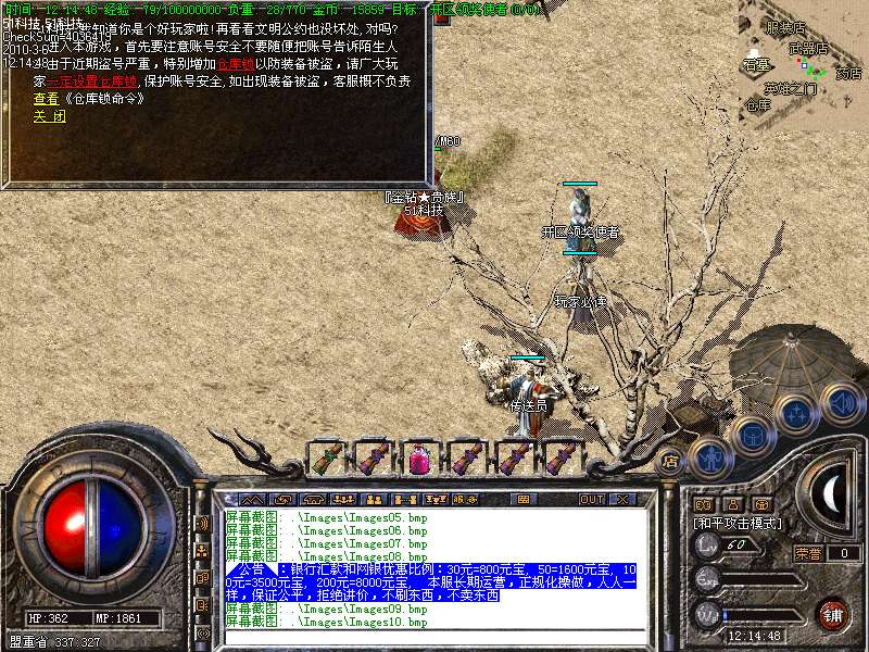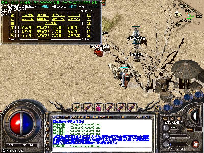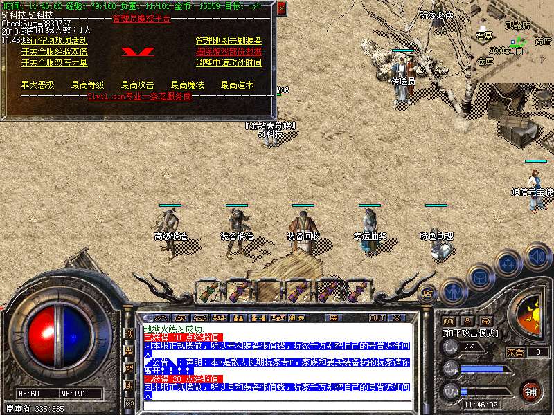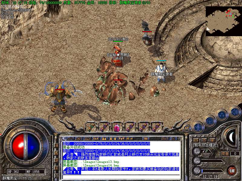 现在看到的是永不过时的最经典的老传奇版本.本版本挖矿.封挂.真正的还原传奇1.76版本元宝! 本服所有boss,30分钟刷新一次,大大提高了装备的暴率,更合理的设计,更永久的打算!进入冰宫的方法:可以从石墓直接跑到石墓10层,在石墓10层中间的冰宫看守处进入;也可购买猪八传送卷直接飞到石墓八层再跑下去! 开区后5天千人统一攻城战.沙城主奖励2000元宝! 公告:对本服务器有任何不明白的地方,请打“@帮助”命令,了解服务器的综合问题!本服地图和怪物设置全仿盛大1.76官方设置.关于暴率和地图的坐标有不清楚的玩家请打@帮助 查询. 登陆本服务器需要专用登陆器,否则不能登陆,是为了禁止外挂的出现,登陆器按F12呼出自带内挂,封穿人穿怪。各位PK高手请注意新增的游戏热键: Alt+S 道士下毒模式(互换,绿毒,红毒) | CTRL+V 切换小地图 | CTRL+Z 显示物品名称 | TAB 快速复制人名 | Alt+G 快速组队 | Alt+R 刷新背包 | Alt+Q 快速退出游戏各位PK高手请注意新增的游戏热键: Alt+T 交易 | Alt+S 道士下毒模式(互换,绿毒,红毒) | Alt+I 打开包裹 | Alt+P 组队窗口 | Alt+C 人物窗口 | Alt+V 技能窗口! 玩家和自己的恋人结婚后,除了可以查询伴侣的位置外,还可以使用[@夫妻传唤]指令把恋人传唤到自己身边。请玩家保护好自己的帐号和密码,不要告诉任何人(包括GM)GM无需找任何人索取帐号和密码,如装备被盗,被骗,请立即用密码保护在登录器上找回. 如果你在游戏中发现任何漏洞,请告诉我们,只有你们的支持,我们才会做得更好!走的更远. 本网络服务器为散人服务器,谢绝家族进入收人发群号,如果不听阻告进F的,将被封号处理!武器最高可升级7点.每次升级时间需要30分钟. 本服务器禁止任何外挂,发现使用脱机等外挂者,不管是否花钱,立即永久封号!举报者有元宝奖励!友情提示:人物红名死亡或者回城将进入恶人谷,下方的门可进入万恶之源打宝地图!新区不出售装备,购买元宝请使用元宝自动冲值