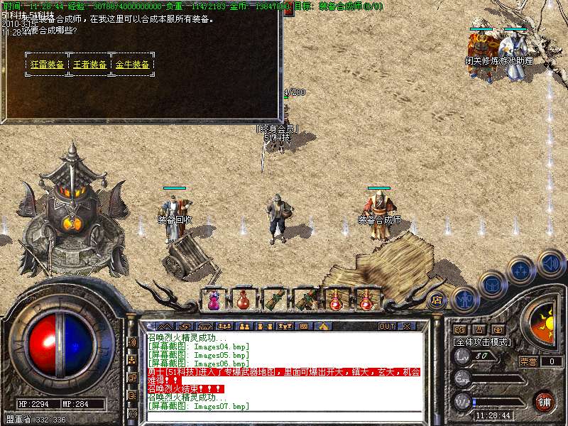 三:当你累计一定数量的装备后可合成更高一级的装备,如开天,三把普通的开天就可以合成+1的开天,三把+1的开天合成+2的,麻痹、护身、复活都可以合成。