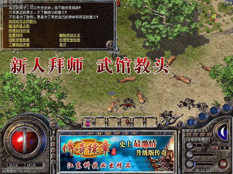在到武官教头拜王师徒弟 级升过的可以收徒弟 拜完了以后方便在盟重领取装备