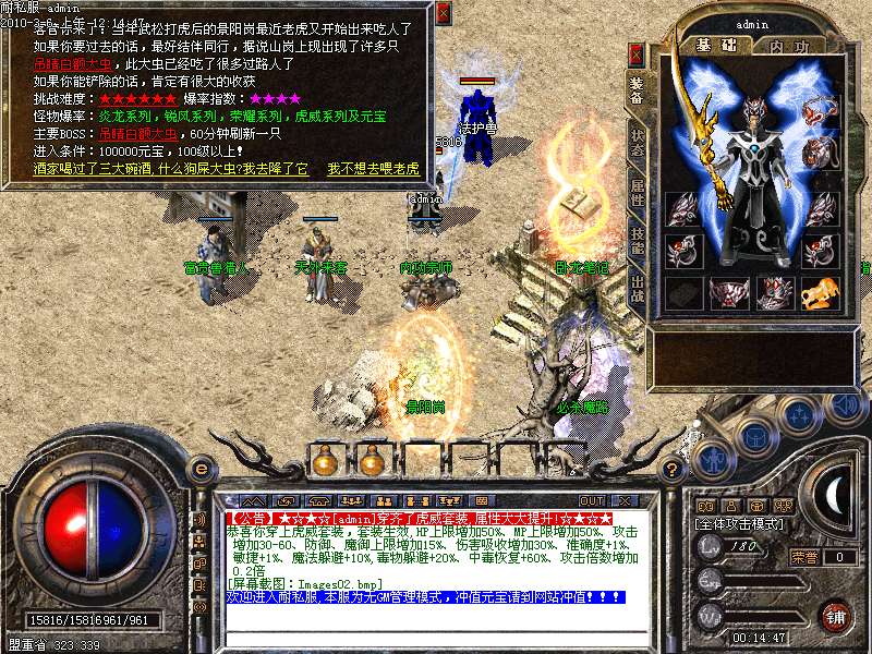 ⒏调整闭关修炼,安全泡点每秒50万经验,PK泡点每秒100万经验。