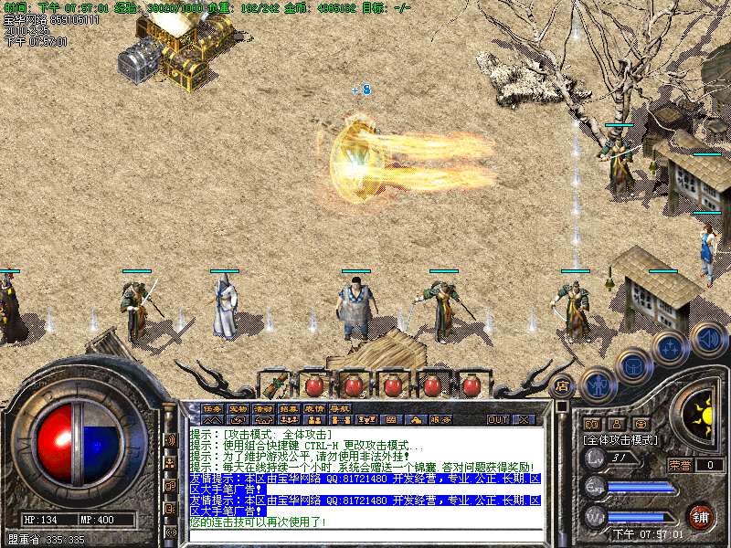 新增加:荣誉大战,每天晚上8点准时举行,杀一个人奖励50元宝!