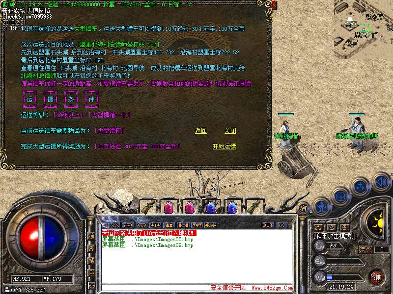 4;总镖头;最近市面很不安全,所以我们镖师的职业又兴旺了起来!送大型镖车可以得到.10万经验.30个元宝.100万金币,是新手的好任务喔。
