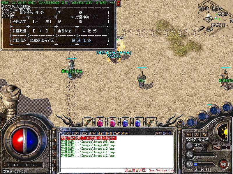 10;元宝PK场;玛法大陆是受法律保护,杀人是要红名,PK场由于远离玛法大陆,所以不受法律的制裁.在里面杀死别人可以获得10元宝的奖励。