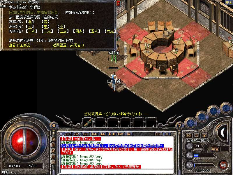 祖马六层:刷每二小时刷一次元宝大帝,心爆100元宝.