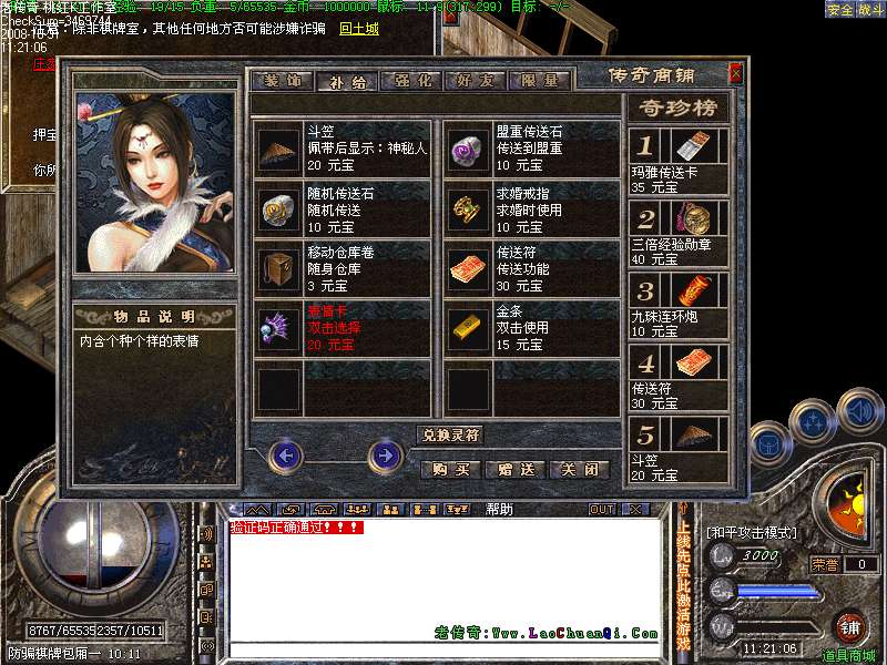 3:增加商铺元宝交易物品,分别有增加1000-10000双击元宝,方便玩家交易元宝!