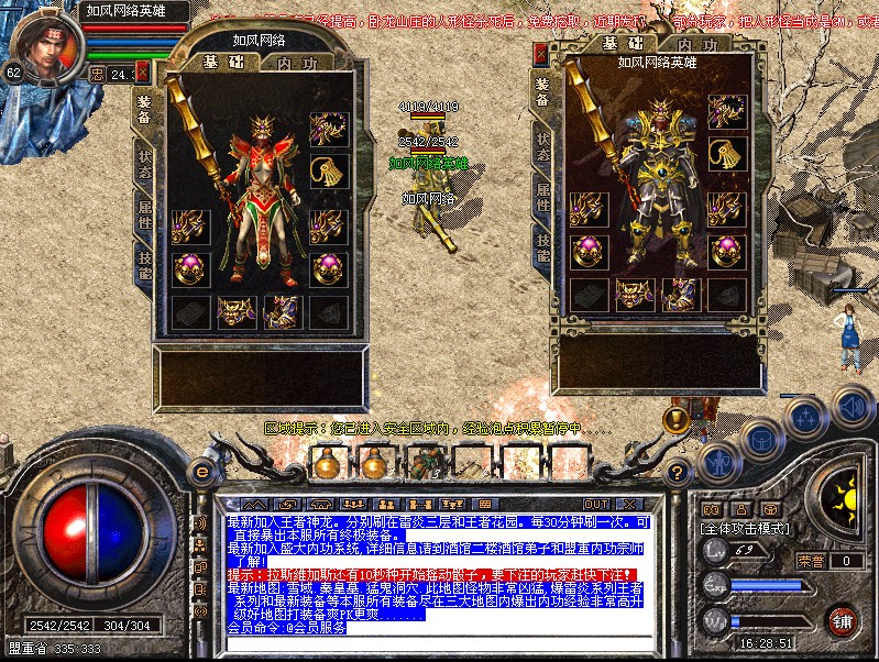 2.增加2套装备炎龙、荣耀全套穿戴后将获得额外提升HP值20%属性,.缺少一样将失去额外属性.
