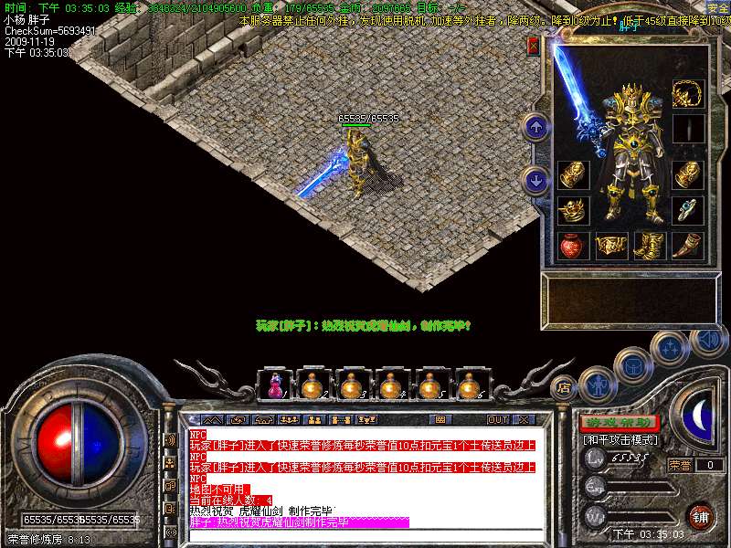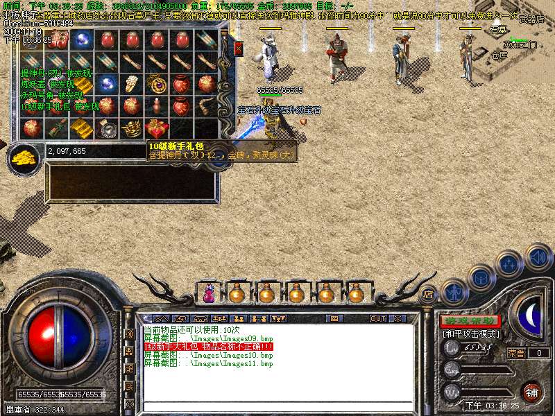 7,增加等级新手大礼包,每位新手上线可获得等级新手大礼包,礼包物品内禁止交易,不会掉落,禁止仍掉!