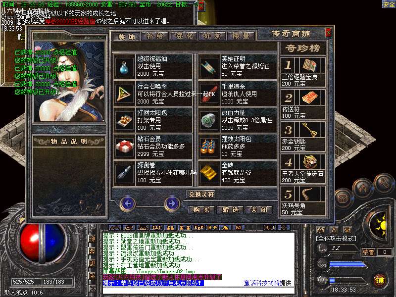 !.在1.80原始地图上增加,增加新地图提高游戏娱乐性质,增加赌博系统,增加王者天堂,全新体验新地图。挑战性极高,爆一切终极装备,建议组队前往