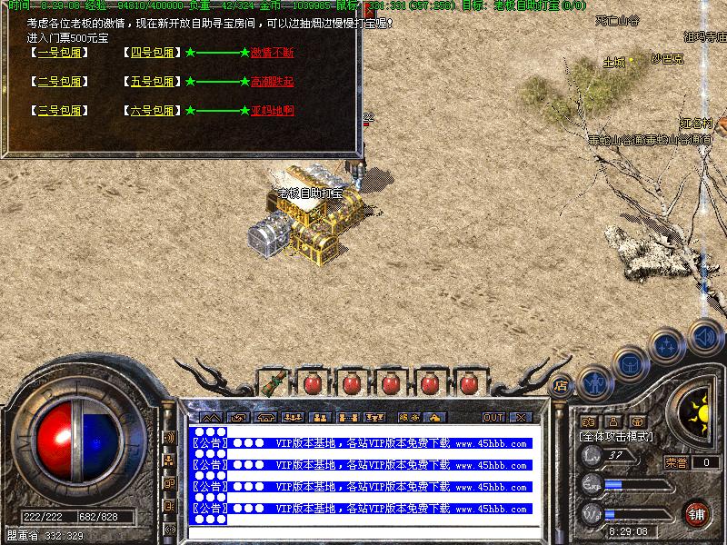 - ☉ V8引擎传奇端游【荒域专属单职业九大陆】Win一键端+配套补丁网站+架设教程