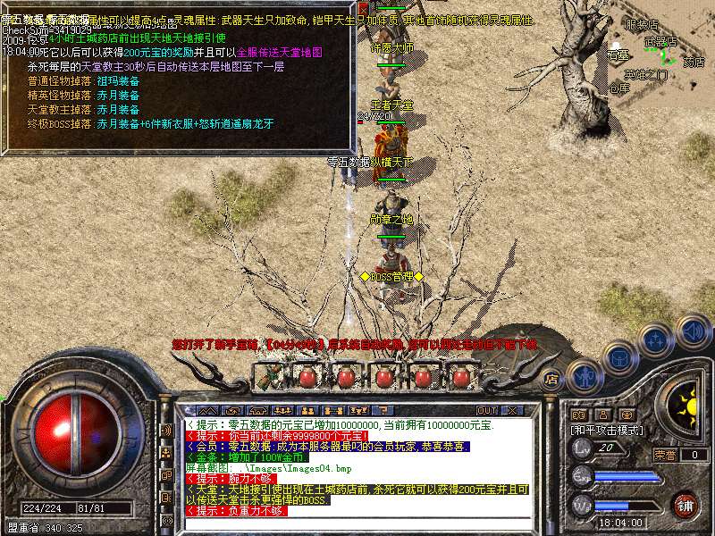 [151]土城猪洞门口每隔2小时左右就会刷新一直元宝树妖,此怪没有什么攻击力,只要你有能力杀死它.每次都可以获得100-300的元宝奖励.