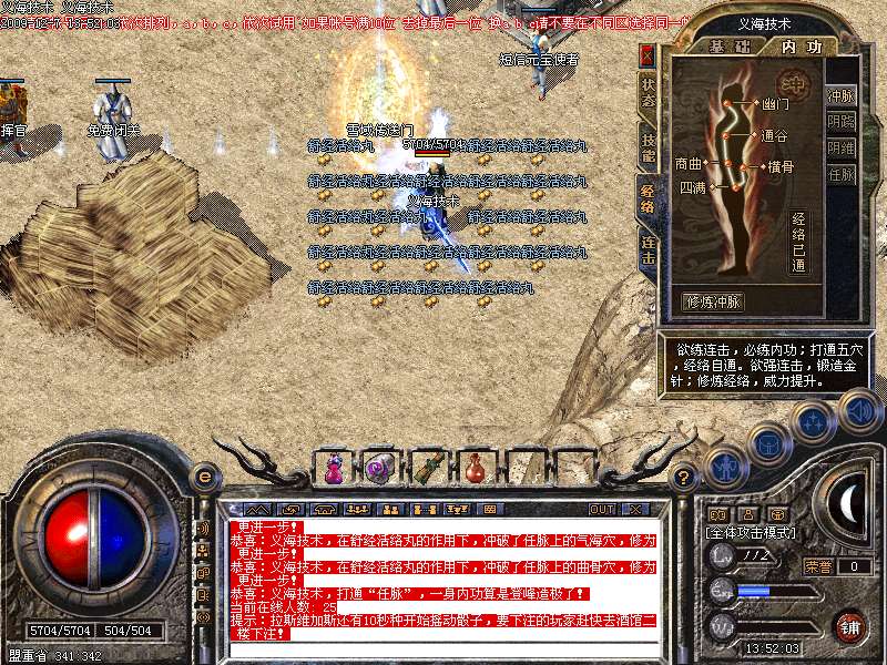 本服最新更新盛大12招连击,欲修连击,必学内功,打通穴位,贯穿经脉,金针刺激连贯招式!因为同步盛大,玩家转职后连击会消失,所以取消转职!请玩家慎重选择职业!
