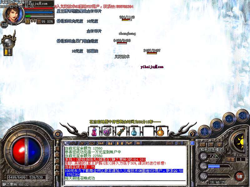 最新添加地图--终极仙境,玩家进入可享受双倍经验泡点,里面怪物可挖出所有装备!