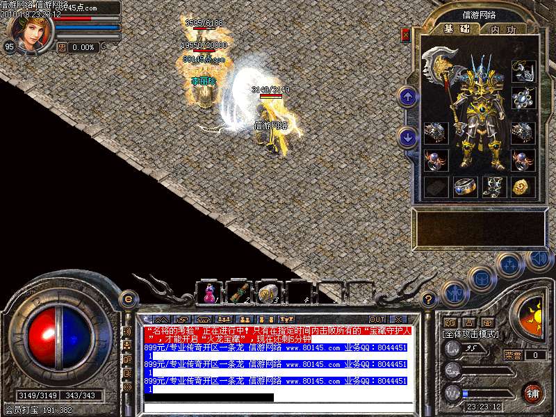 注意:本服100%仿盛大最新设置,卧龙山庄、宝箱系统、酒馆斗酒、卧龙英雄、雷炎洞、星王系列,狂雷系列套装、王者系列新装、逐日剑法等三职业新技能!除此之外增加了更多高级打宝地图以满足玩家的需求!