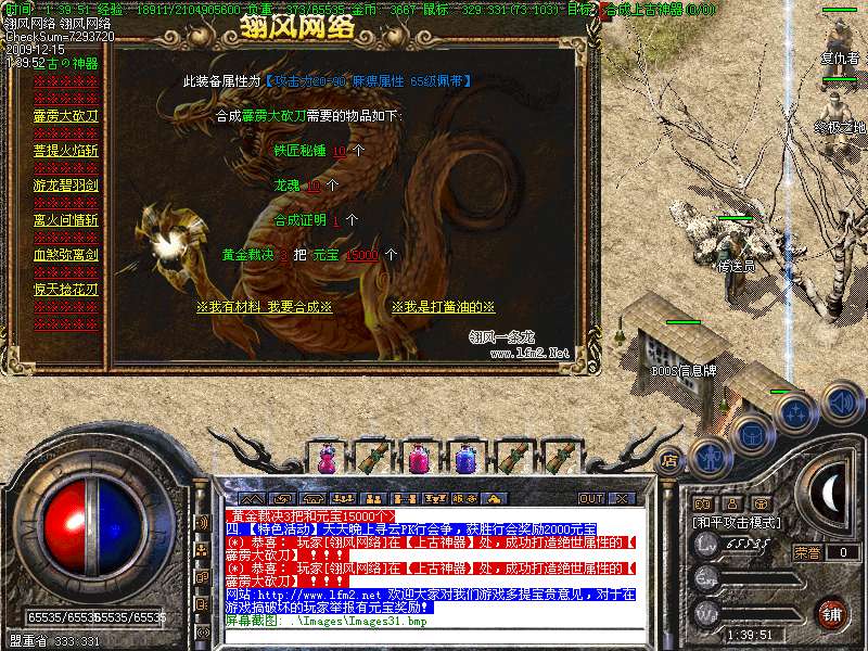 10、修正炎龙合成师处某些装备无法合成的漏洞!